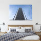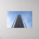 ¡Lleva a casa un ícono de Chicago! El rascacielos se extiende sobre un telón de fondo de un cielo azul claro, con dos máscaras altas que lo flanquean. La perspectiva ofrece una vista espectacular de las líneas verticales y la simetría del edificio.