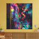"El escape de datos cósmicos" es una representación abstracta de una metrópolis virtual infundida con elementos cósmicos. La obra de arte representa un paisaje urbano digital que se adentra en el éter, compuesto por capas apiladas de texturas pixeladas y estructuras geométricas. El ascenso vertical de los bloques de datos está adornado con orbes brillantes que se parecen a planetas distantes, lo que sugiere un universo donde la arquitectura de la información y los cuerpos celestes coexisten. La cascada de neones se asemeja a la lluvia digital, lo que aumenta la sensación de un nocturno de alta tecnología, mientras que la variada paleta de colores realza el ambiente futurista y de otro mundo.