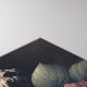 Esta obra de arte cuenta con un busto de mármol clásico de una mujer, de perfil. Su cabello está adornado con flores vibrantes, pasando de moradas suaves a blues silencioso. Encima de ella, un pequeño pájaro se perfila delicadamente entre las flores, realzando el ambiente natural y sereno. El fondo es oscuro y está decorado con texturas, lo que pone de relieve el contraste entre el mármol pálido, las flores vívidas y la forma delicada del ave. La pieza desprende un ambiente romántico y vintage con un sutil sentido de misterio.