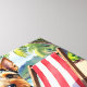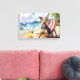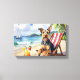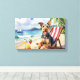 Un alegre terrier de Airedale disfrutando de un entorno soleado de playa con colores vibrantes y detalles tropicales. La disposición equilibrada y el estilo pictórico crean un ambiente costero animado.