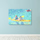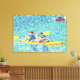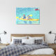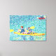 Pintura de una escena de kayak en el río, hecha en puntillismo, impresa en pinturas envueltas de tela.