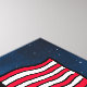 Esta obra de arte de Peanuts celebra el 50 aniversario de la órbita de la luna Apolo 10 de 1969 y el aterrizaje de la luna Apolo 11. Este diseño presenta a Snoopy en su traje espacial naranja con la bandera estadounidense.