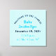 Nuevo bebé niño azul Bienvenido al mundo bebé. Personaliza con el nombre del bebé y estadísticas de nacimiento en texto azul, y fecha de nacimiento en texto negro. Hermoso decorado para la pared del cuarto del bebé. Diseños originales de TamiraZDesigns.