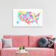 Este ilustracion muestra un mapa de Estados Unidos hecho con nombres de estado individuales.