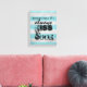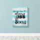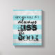 lienzo estirado en pared de cocina con una cita graciosa adorable siempre besa al cocinero con afligidas rayas azules y grises. Arte mural para la decoración de la cocina.