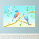 En una rama delgada debajo de flores rosadas de primavera, dos pájaros azules se sientan juntos. El pájaro macho es llamativo y vívido, sus plumas ricas en color: plumaje azul profundo y vibrante en la cabeza, espalda, alas y cola, contrastado por un rico color castaño o rojo ladrillo en la garganta y el pecho. Su vientre es blanco.