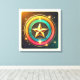 Una fascinante composición circular que muestra una estrella dorada radiante rodeada de una rica mezcla de colores de gradiente vibrante, incluyendo naranja, verde azulado, rosa y amarillo. El luminoso flash de la estrella añade un toque celestial al diseño abstracto, convirtiéndolo en una pieza atractiva ideal para proyectos creativos, presentaciones o decoración.