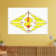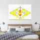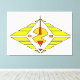 "Estudio12. Puerta de entrada" es una composición gráfica abstracta que presenta un estilo geométrico audaz. En su corazón se encuentra un disco amarillo estilizado intersectado por elementos dinámicos rojos y naranjas que se asemejan a flechas o antenas. Toda la composición está enmarcada dentro de una forma de diamante formada por placas doradas paralelas sobre un fondo negro profundo. La imagen evoca temas de tecnología espacial, portales digitales y una estética cyberpunk distintiva.