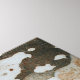 This is a hot looking design piece photo image picture of wooden tree bark that has been manipulated into a geometric mirror image repeat patterned sectional with a unique style that is similar to looking through a kaleidoscope mirrored viewer. Featuring earth tone colors of beige, brown, cream, gray and tan.