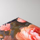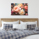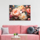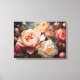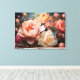 Un vívido acercamiento de peonías y rosas florecientes, mostrando pétalos fluidos suaves en tonos rosa, melocotón y blanco sobre un fondo oscuro. Esta hermosa obra de arte floral trae vida y elegancia a cualquier habitación.