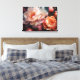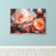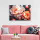 Un vívido acercamiento de peonías y rosas florecientes, mostrando pétalos fluidos suaves en tonos rosa, melocotón y blanco sobre un fondo oscuro. Esta hermosa obra de arte floral trae vida y elegancia a cualquier habitación.