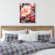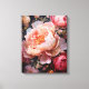 Un vívido acercamiento de peonías y rosas florecientes, mostrando pétalos fluidos suaves en tonos rosa, melocotón y blanco sobre un fondo oscuro. Esta hermosa obra de arte floral trae vida y elegancia a cualquier habitación.