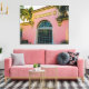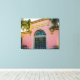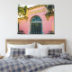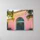 En la fotografía original de ZoeSPEAK en este Stretched Canvas Print, vemos la fachada de una antigua estación de tren desde los primeros tiempos del ferrocarril en Florida. El viaje en tren era la manera elegante de ir, y el edificio se hace en estuco de color melocotón con adornos de piedra dorada y un cartel que dice 'EXPRESS'. Las puertas acristaladas de color azul pálido y las palmeras frente a un cielo luminoso y casi blanco completan la escena. La estación de tren todavía está en uso.