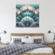 Los brillantes fanáticos azules y plateados aportan color a cualquier hogar con este diseño Art Nouveau en azul, verde azulado y plateado.