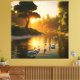 Lienzo Fantasía Cute Vivid Swans Sunset Forest. Perfecto