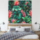 Sumérjase en la exuberante belleza de la selva tropical con esta vibrante pintura acuática. Con exóticas hojas tropicales verdes y rosas sobre un telón de fondo oscuro, capta la esencia de la elegancia indomable de la naturaleza. Perfecto para añadir un toque atrevido y botánico a cualquier espacio.