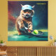 Lienzo Fantasía, un gato lindo jugando al tenis