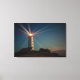 Lienzo Faro en una colina que brilla por la noche