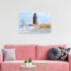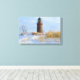 Un sólido faro de ladrillos rojos se encuentra solo vigilando los mares en invierno. El terreno áspero y rocoso está cubierto de nieve con hierbas de trigo coloreadas que soplan al viento. Evoca una sensación de soledad. Un cielo azul con nubes espesas blancas sobre el cielo.