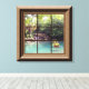 Cuenta con una falsa ventana enmarcada de madera con vistas a un bonito jardín acuático. El marco continúa por los lados del lienzo. Ver imágenes adicionales para ver más de cerca.