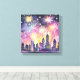 Lienzo Feliz Año Nuevo | Acuarela nocturna de la ciudad d
