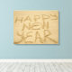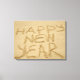 Este diseño presenta una imagen del texto "AÑO NUEVO FELIZ" escrito en arena con un palo.