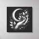 Add elegance and symbolism to your space with this stunning composition featuring a feminine hand holding a crescent moon surrounded by intricate botanical details. Designed in a refined minimal aesthetic using detailed dotwork and stipple shading, this piece blends organic beauty with a timeless artistic concept. The monochrome black and white palette adds a striking contrast, creating an image that commands attention while maintaining sophistication.