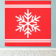 Este diseño deportivo de temporada presenta un copo de nieve nórdico blanco centrado en el interior de rayas de carreras gemelas blancas de borde superior e inferior contra fondo rojo Navidad brillante.
