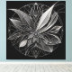 A highly detailed floral‑geometric mandala created from fine white linework on deep black. The layered petal structures and precise symmetry give this artwork a refined, modern presence that perfectly represents the Filigran in Black Collection.