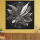 Ein hochdetailliertes florales‑geometrisches Mandala aus feinem weißen Line‑Art auf tiefschwarzem Hintergrund. Die geschichteten Blütenformen und die präzise Symmetrie verleihen diesem Kunstwerk eine edle, moderne Ausstrahlung und machen es zu einem Highlight der Kollektion Filigran in Black.