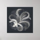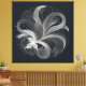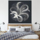 Ein edles Line‑Art‑Design mit fließenden, federartigen Strukturen in einer kreisförmigen Komposition. Der Kontrast aus feinen weißen Linien auf tiefem Schwarz setzt einen luxuriösen, modernen Akzent in jedem Wohnraum.