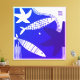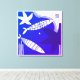 Canvas wall art of fish and starfish in colors of blue and white, in an abstract design.