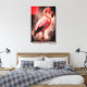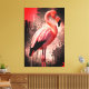 Canvas wall art with illustration of a flamingo against an abstract background of pink , white and gray.