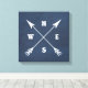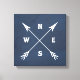 Ilustracion de brújula con flechas y decoración norte, este, sur y oeste sobre fondo de grano azul