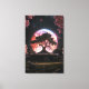Esta fascinante obra de arte presenta un paisaje surrealista con un gran cuerpo celeste brillante en el fondo, situado contra un cielo estrellado por la noche. En primer plano, un árbol con un follaje rosa vibrante, posiblemente flores de cerezo, se alza sobre un terreno elevado. Los alrededores están decorados con árboles de flores rosas y terrenos rocosos, lo que crea una escena de ensueño que combina a la perfección elementos naturales y cósmicos. Esta pieza evoca un sentido de asombro y tranquilidad, perfecto para añadir un toque de fantasía a cualquier espacio.