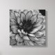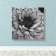 Imagen en blanco y negro de una flor de Dahlia sobre un lienzo.