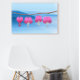 Lienzo Flor de corazón sangrante rosa sobre fondo azul