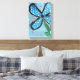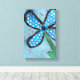 Lienzo Flor de medios mixtos con puntos de polka azul