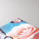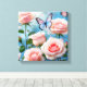 Hermosa y apacible planta suave rosa rosa rosa de flores con mariposa azul transparente