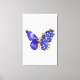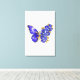 Joyería, azul, zafiro, mariposa floral brillante con ala decorada con flores azules y preciosas con hojas de oro sobre fondo blanco.