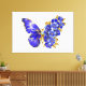 Joyería, azul, zafiro, mariposa floral brillante con ala decorada con flores azules y preciosas con hojas de oro sobre fondo blanco.