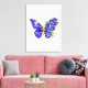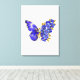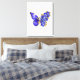 Joyería, azul, zafiro, mariposa floral brillante con ala decorada con flores azules y preciosas con hojas de oro sobre fondo blanco.