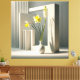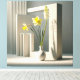 A serene blend of nature and structure: Two bright yellow daffodils and a white hyacinth stand in a minimalist white vase, framed by a geometric architectural backdrop. Soft, directional light creates sculptural shadows and highlights the delicate floral forms. This modern still‑life composition brings quiet elegance and contemporary clarity to any interior. Ideal for design‑focused homes, creative workspaces, and lovers of minimalist floral art