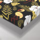 ¿Te gustan los flamingos? ¿Disfrutas la vida salvaje en las selvas tropicales? Este patrón de flamingo tropical sin fisuras le dará un poco de diversión a sus vacaciones de verano. Te queda bien sentado en la playa. Los patrones florales siempre dan la impresión de alegría y felicidad. Puedes presentarlo como un regalo a tus amigos que aman a los pájaros flamingo. Patrón de superficie de flamingo amarillo y flores blancas sobre fondo oscuro.