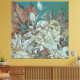 Lienzo Flores antiguas rusticas pintadas sobre Verde azul