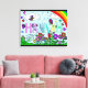 Una gran pared de bonito colorida para el dormitorio de un niño con el nombre de Hannah. Flores coloridas, violeta, rosa, roja, amarilla, azul y verde con un arcoiris de bonito, mariposas, orugas y ladybugs.