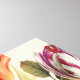 © Wild Apple. Pintura realista de arreglos florales con rosas, tulipanes, lirios en colores naranja, rosa, blanco, morado y otros colores de primavera.