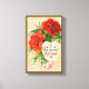 Ilustración antigua Diseño victoriano de San Valentín con flores de clavel rojas y rosadas en flor. Ephemera antigua de amor y romance. Un mensaje de San Valentín.
