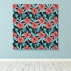 Lienzo Flores rojas trópicas sin costuras y hojas azules
