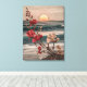 Captura la serenidad de una puesta de sol costera con esta impresionante pintura floral. Las vibrantes flores rojas y blancas en el fondo del cielo dorado y las tranquilizantes olas crean un ambiente tranquilo y acogedor. Esta pieza seguramente le añadirá un toque de encanto costero a cualquier casa.